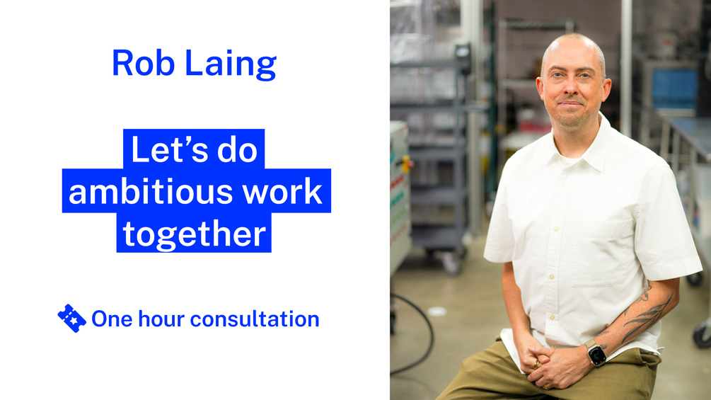 A one-hour consult with Rob Laing, a two-time acquired startup founder who helps the world's leading brands do ambitious things